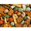 Složení: rýže, PŠENIČNÁ MOUKA, ARAŠÍDY, cukr, modifikovaný škrob (kukuřičný, bramborový, tapiokový), SÓJOVÁ omáčka (voda, SÓJOVÉ boby, PŠENICE, sůl), glukózový a kukuřičný sirup, slunečnicový olej, SEZAMOVÉ semínko, maltodextrin, sůl, mořské řasy, kypřící látka E503ii, barviva: E141, E150a, E160c, výtažek z kvasnic, ochucující složka (cukr, sůl, maltodextrin, SÓJOVÝ prášek, aroma, výtažek z kvasnic, slunečnicový olej), wasabi prášek (aroma, křen, wasabi japanica, modifikovaný bramborový škrob, stabilizátor E414).