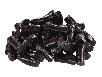 Složení: cukr, melasa, PŠENIČNÁ mouka, glukózový sirup, sůl, extrakt z kořene lékořice, barviva E171, E153, E132, rostlinný olej, leštidla: E901 (včelí vosk), E903 (karnaubský vosk), E904 (šelak), přírodní aroma.