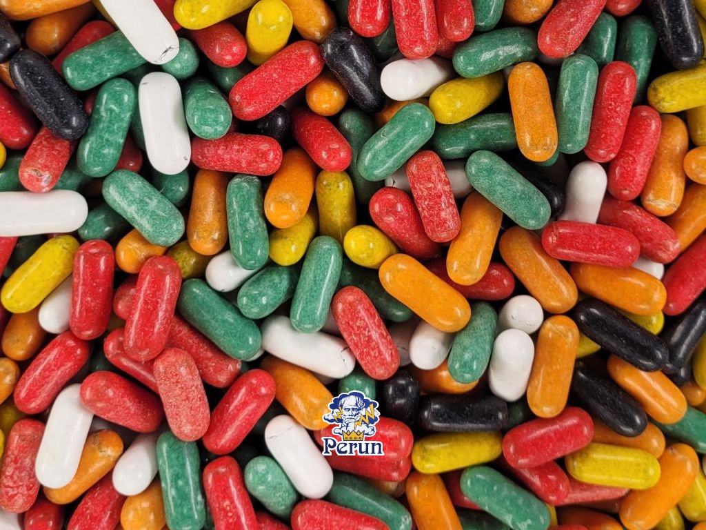 Lékořice v barevné polevě je černá sekaná lékořice také známá pod názvem pendrek, která je obalená ve sladké tvrdé cukrové polevě různých barev.